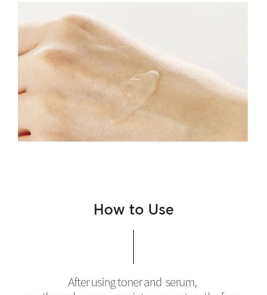 1. After cleansing and toning, apply a moderate amount to face and neck.