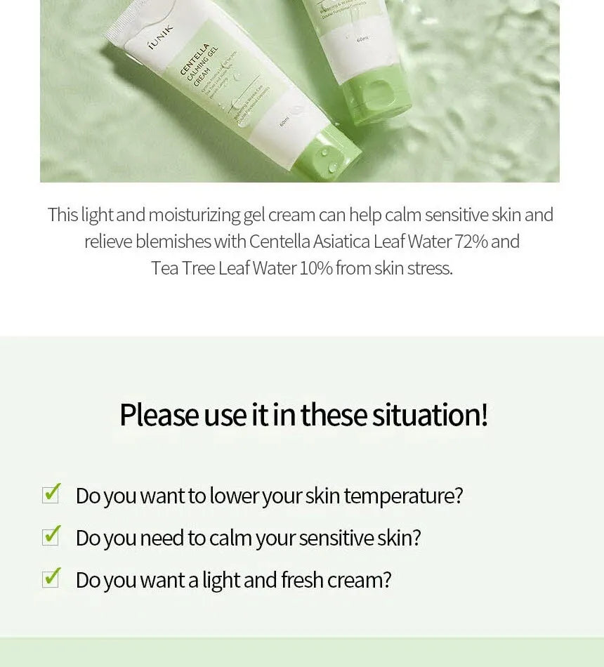 iUNIK Centella Calming Gel Cream 60 ml – Soothing Lightweight Moisturiser for Sensitive & Oily Skin