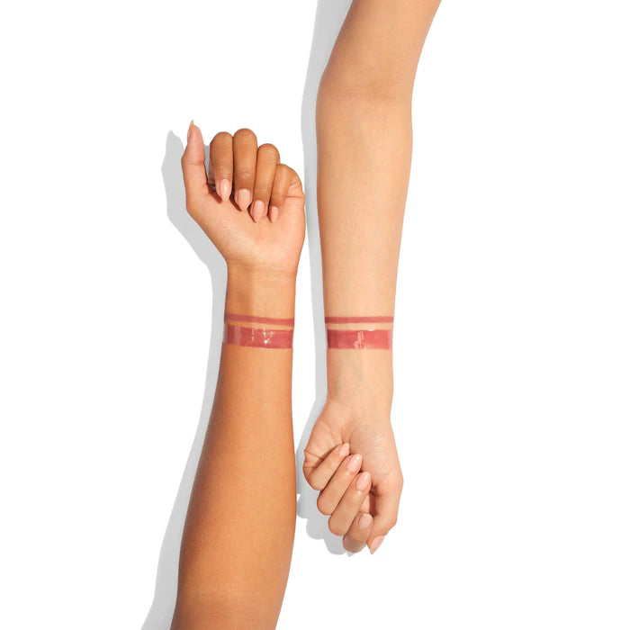 The Lip Cheat liner helps define and reshape lips with precision, while the Collagen Lip Bath gloss adds a glossy, high-shine finish and subtle volume for a polished, full-lip look. Together, they give a soft, natural yet elegant pout.