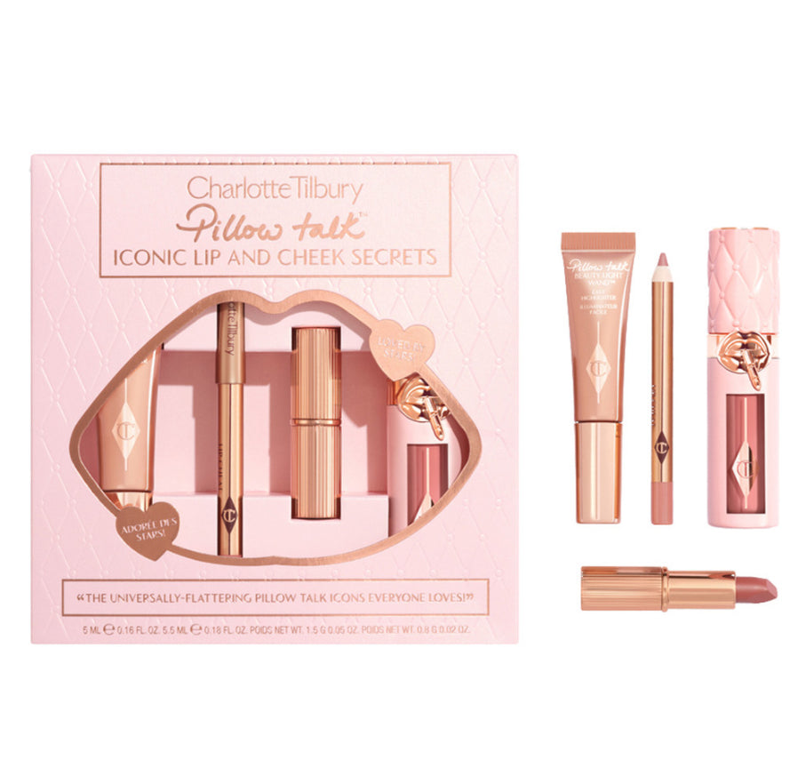 تتضمن مجموعة الهدايا الحصرية هذه قلم تحديد الشفاه الوردي العاري الشهير من شارلوت، وأحمر الشفاه، وعصا Beauty Light Wand، وملمع الشفاه كامل الحجم. تم تصميم كل منتج ليتناسب مع جميع ألوان البشرة، مما يجعله الهدية المثالية للجميع.