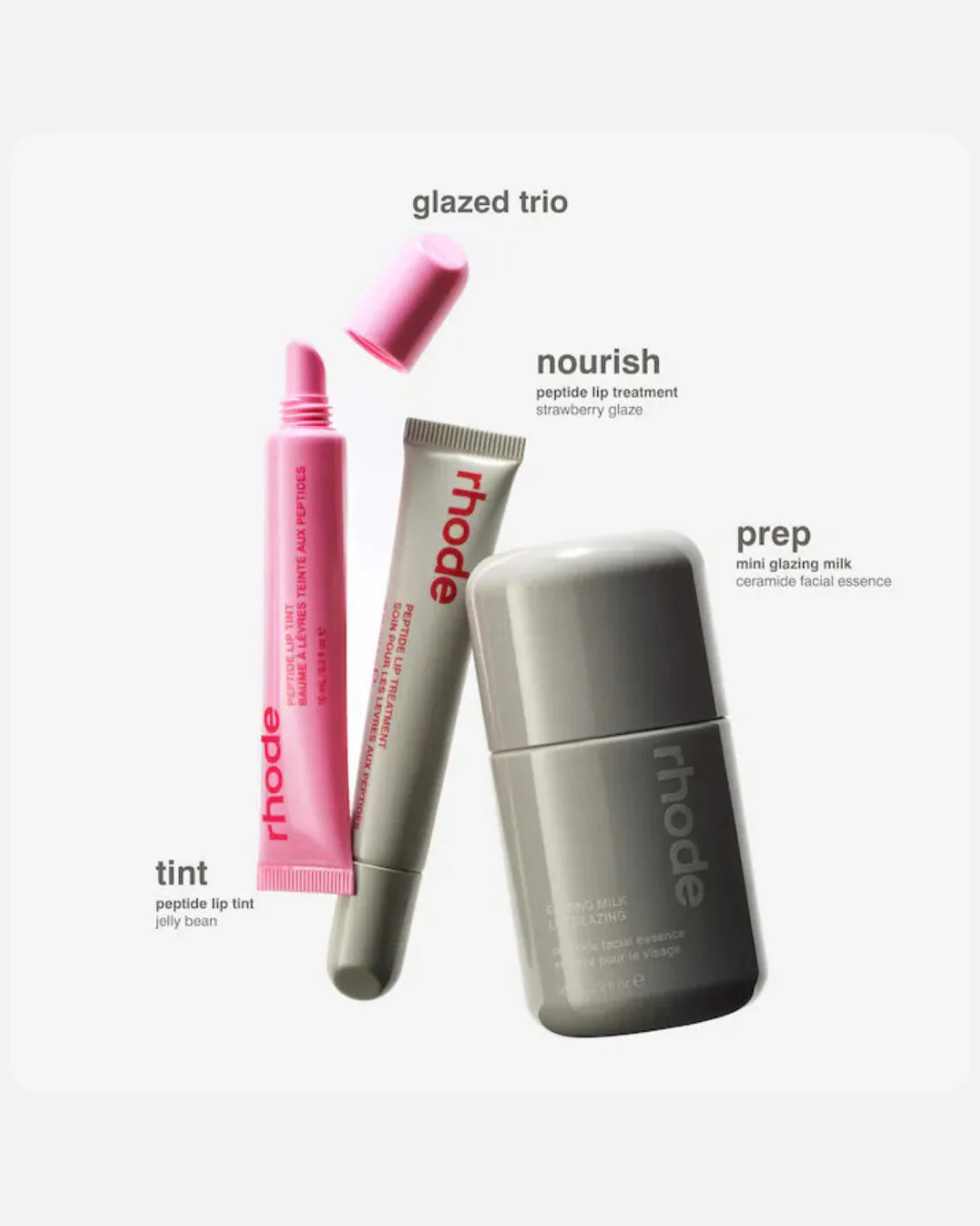 The Holiday Glazed Trio Gift Set is a limited-edition collection of three glowy essentials that nourish both skin and lips. It features a lightweight moisturizing essence and two peptide-powered lip treatments to deliver hydrated, radiant skin and plumped, juicy lips. Perfect for gifting or building a hydrated, glowing routine.