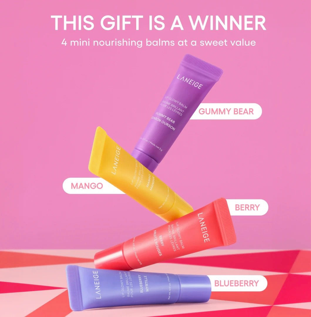 Laneige Glowy Lip Minis – 4 On-The-Go Balms