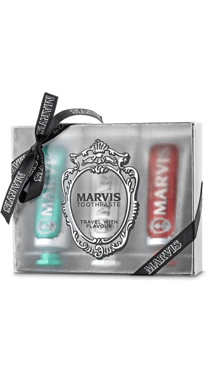 مجموعة معجون أسنان من ثلاث قطع بحجم مناسب للسفر، تحتوي على أشهر نكهات مارفيس. كل أنبوب يُضفي على أسنانك قوامًا كريميًا غنيًا ونضارة تدوم طويلًا، بحجم صغير مثالي للسفر أو الإهداء.