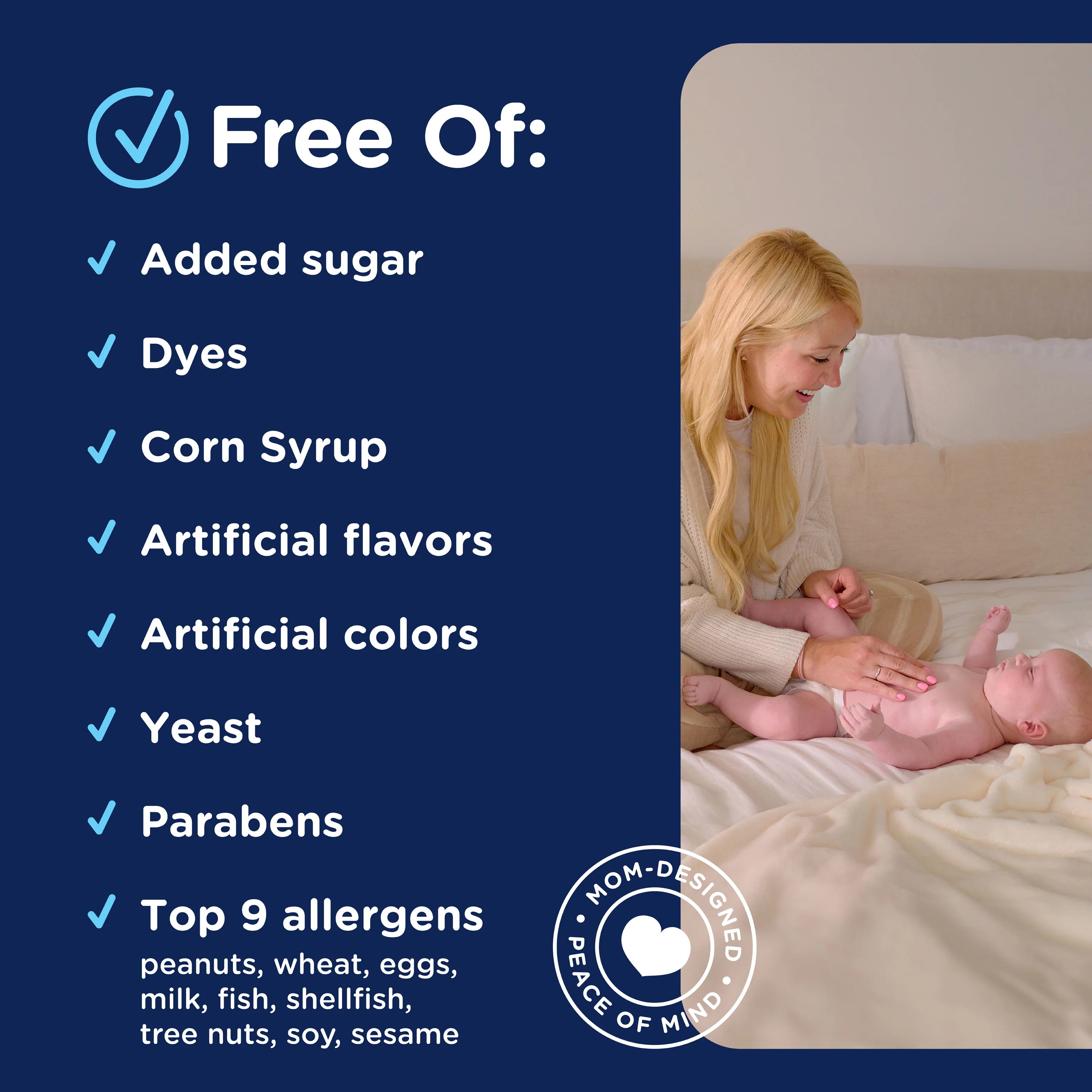Use the included dosage dropper to measure the recommended amount based on baby’s age.