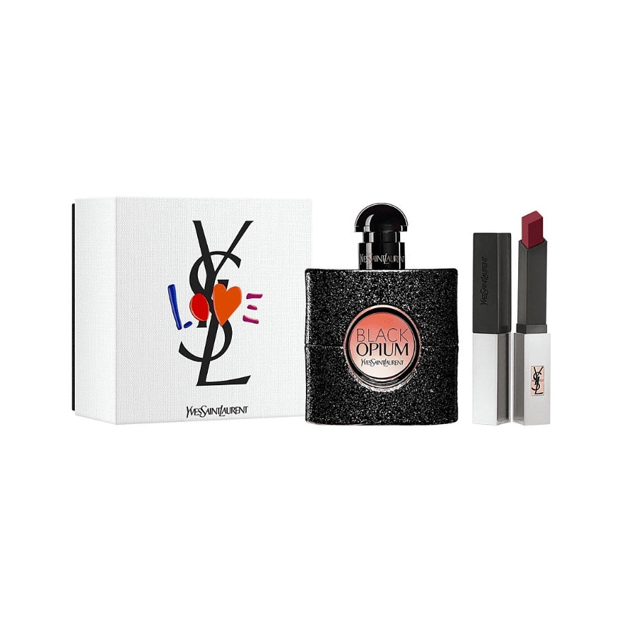 مجموعة بلاك أوبيوم من إيف سان لوران هدية فاخرة للمرأة الجميلة. لطالما أسر سحر عطر بلاك أوبيوم الأيقوني قلبها، والآن هو الوقت الأمثل لإهدائها زجاجة عطرها المفضل، مكتملةً بأناقة بأحمر شفاه روج بور كوتور شير مات. تُستحضر تركيبته العطرية، التي طُرحت للعالم عام ٢٠١٤، بريق أضواء الليل، ورقص التانغو العاطفي، وخفقان القلوب المُغرمة. تأسر هالة هذه التحفة العطرية بجمالها الفريد ورقيها وشغفها. يبقى سحر بلاك أوبيوم الحسي والجذاب، الذي يدوم طويلًا، في قلب كل من جربه.