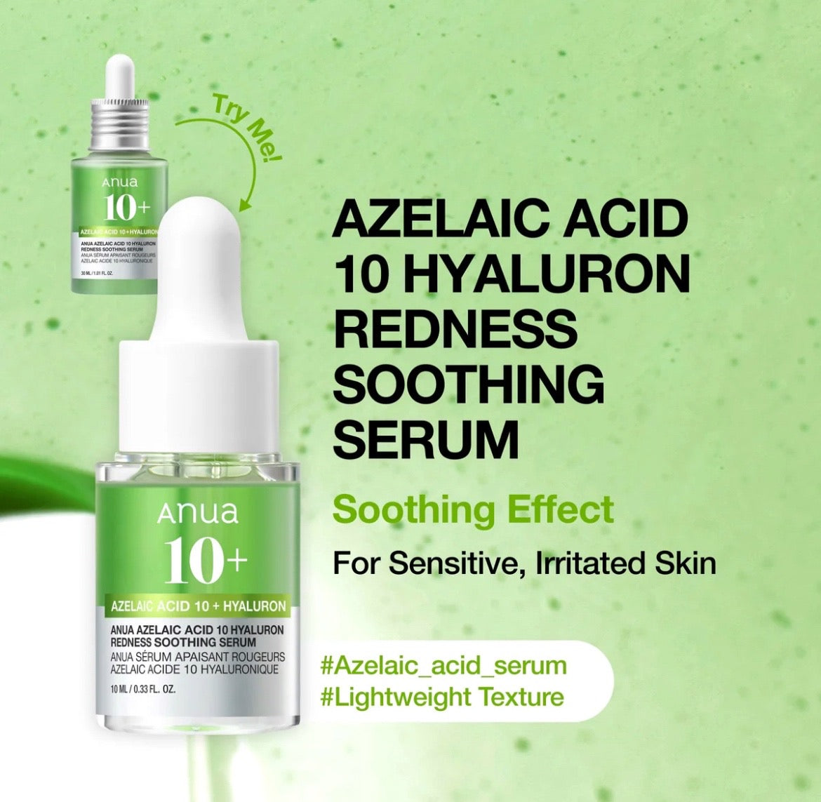 • Azelaic Acid 10 + Hyaluron Redness Calming Serum (10 ml) — Helps soothe redness, calm irritated skin, and refine uneven texture.