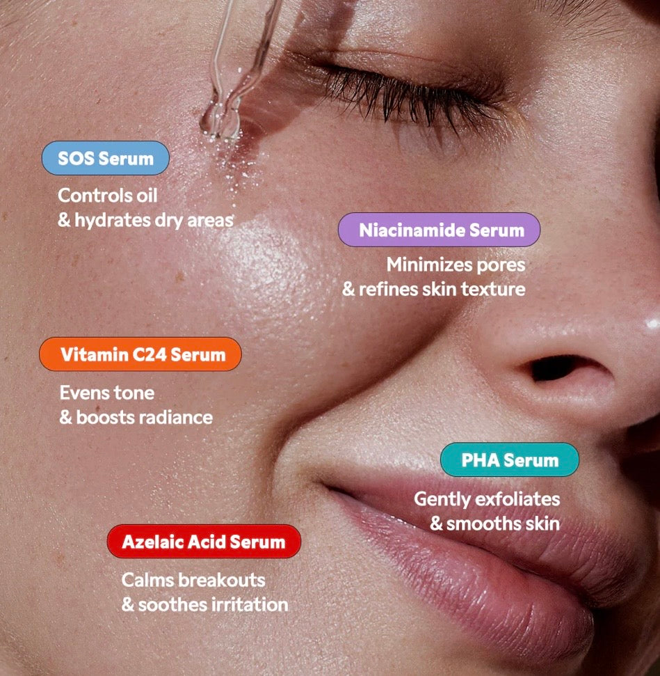 • SOS Serum (10 ml): Hydrates, calms irritation, and balances oil.
