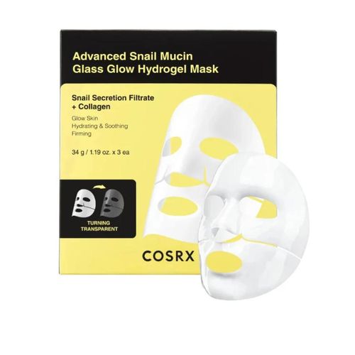 The COSRX Advanced Snail Mucin Glass Glow Hydrogel Mask is an ultra-hydrating sheet mask infused with 25% snail mucin, collagen, niacinamide, and ceramide complex. It works to deliver deep moisture, restore radiance, and soothe irritated or dull skin, helping you achieve a glass-skin glow with just one use. Lightweight hydrogel material and nourishing essence make it perfect for all skin types.