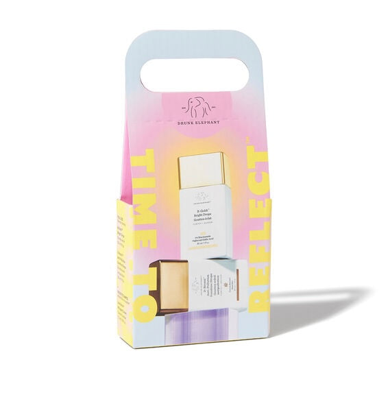 Get ready to glow with the drunk elephant set Time to Reflect Set! This powerful skincare duo features a peptide-infused bronzing serum and a golden niacinamide serum designed to create radiant, healthy-looking skin. Perfect for all skin types, this set helps to even tone, boost your skin’s defenses, and leave a luminous finish — all without any harsh ingredients!