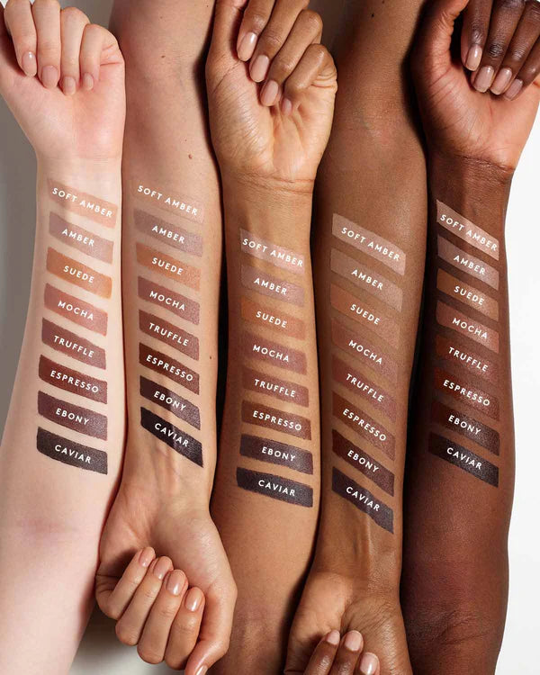 Use the Mini Match Stix Shimmer Highlighter on high points of the face — such as cheekbones, brow bone, bridge of the nose, and cupid’s bow. Blend lightly to enhance glow or layer for an intensified luminous finish.