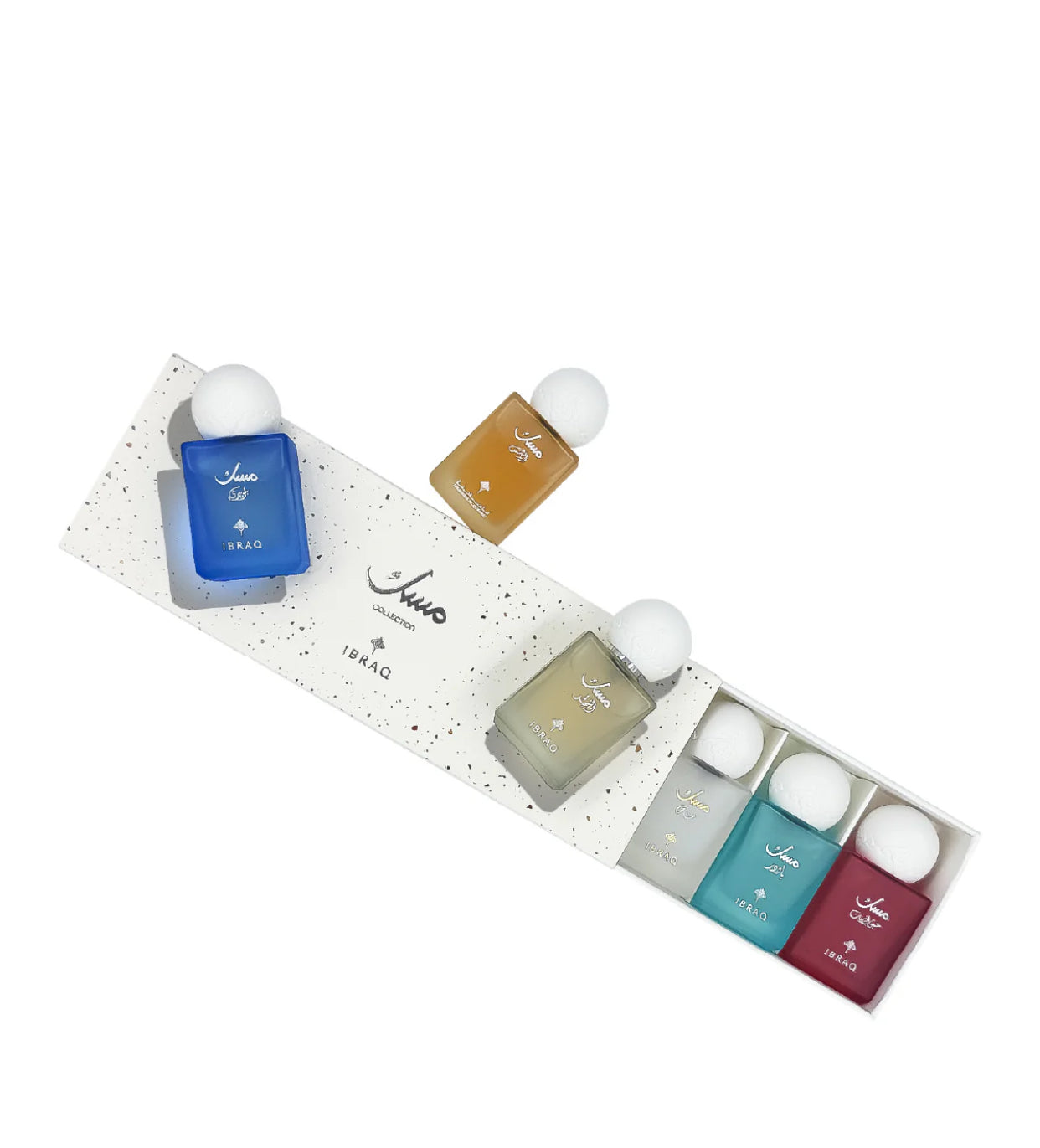 The IBRAQ Mini Musk Collection by Ibrahim Al Qurashi is a curated set of six premium musk fragrances, each presented in a convenient 10ml bottle. Crafted by one of the most respected perfumers in the Middle East, this collection showcases a rich array of musk-based scents — from warm and sensual to soft and elegant. Designed for fragrance enthusiasts and anyone who appreciates luxury Arabic perfumery, this mini set is perfect for sampling multiple signature musk notes or carrying your favorite scent on the go.