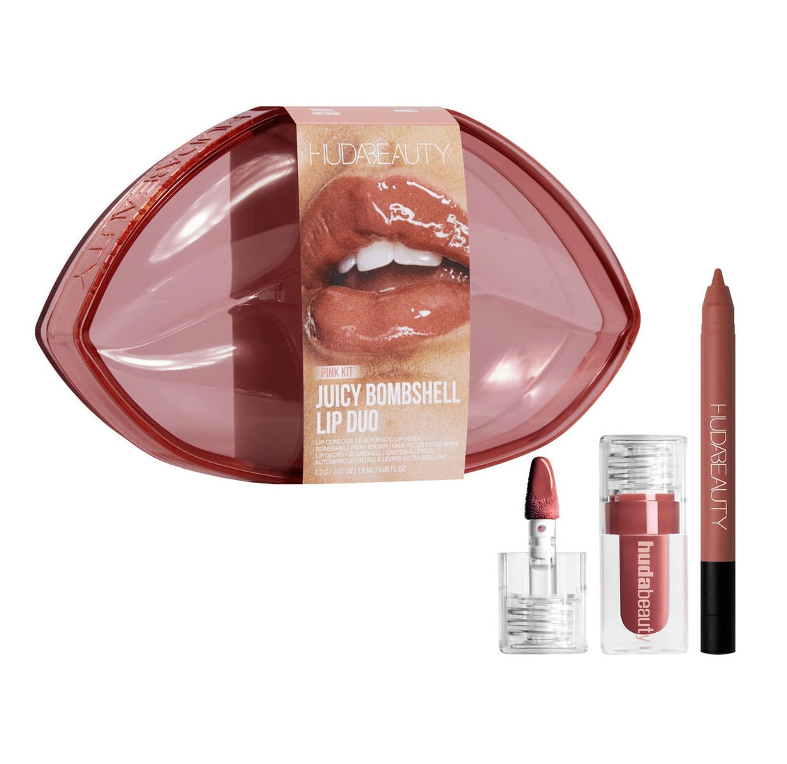 Huda Beauty Juicy Bombshell Lip Gloss & Liner Set – Ultimate Lip Duo for a Luscious Pout