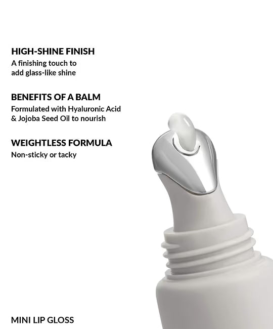 Dab Mini Clear Lip Gloss onto your lips for a dewy, luminous shine.