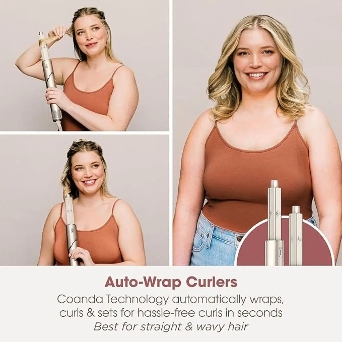 The Auto-Wrap Curlers use air power to automatically wrap hair around the barrel, creating smooth, consistent curls.