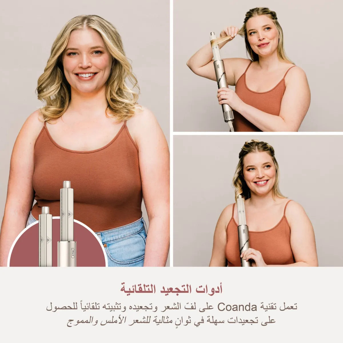 2. Curl: Attach the Auto-Wrap Curlers and let air power wrap hair automatically for effortless curls.