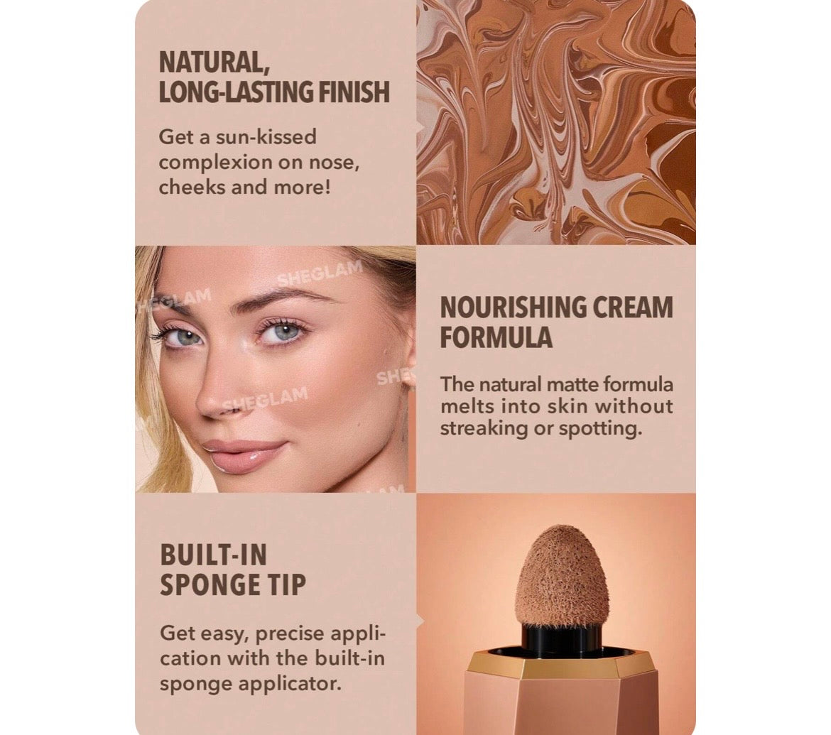 The Sun Beam Matte Liquid Bronzer delivers a natural, sun-kissed warmth without shimmer or shine. Its lightweight, blendable formula melts into the skin, enhancing your complexion with a soft matte finish that lasts all day. Perfect for contouring, adding dimension, or creating a radiant, healthy glow, this bronzer suits all skin types and tones.