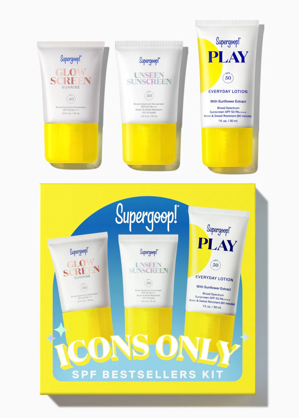 Supergoop Icons Only SPF Bestsellers Kit – Must-Have Travel Sunscreen Trio!