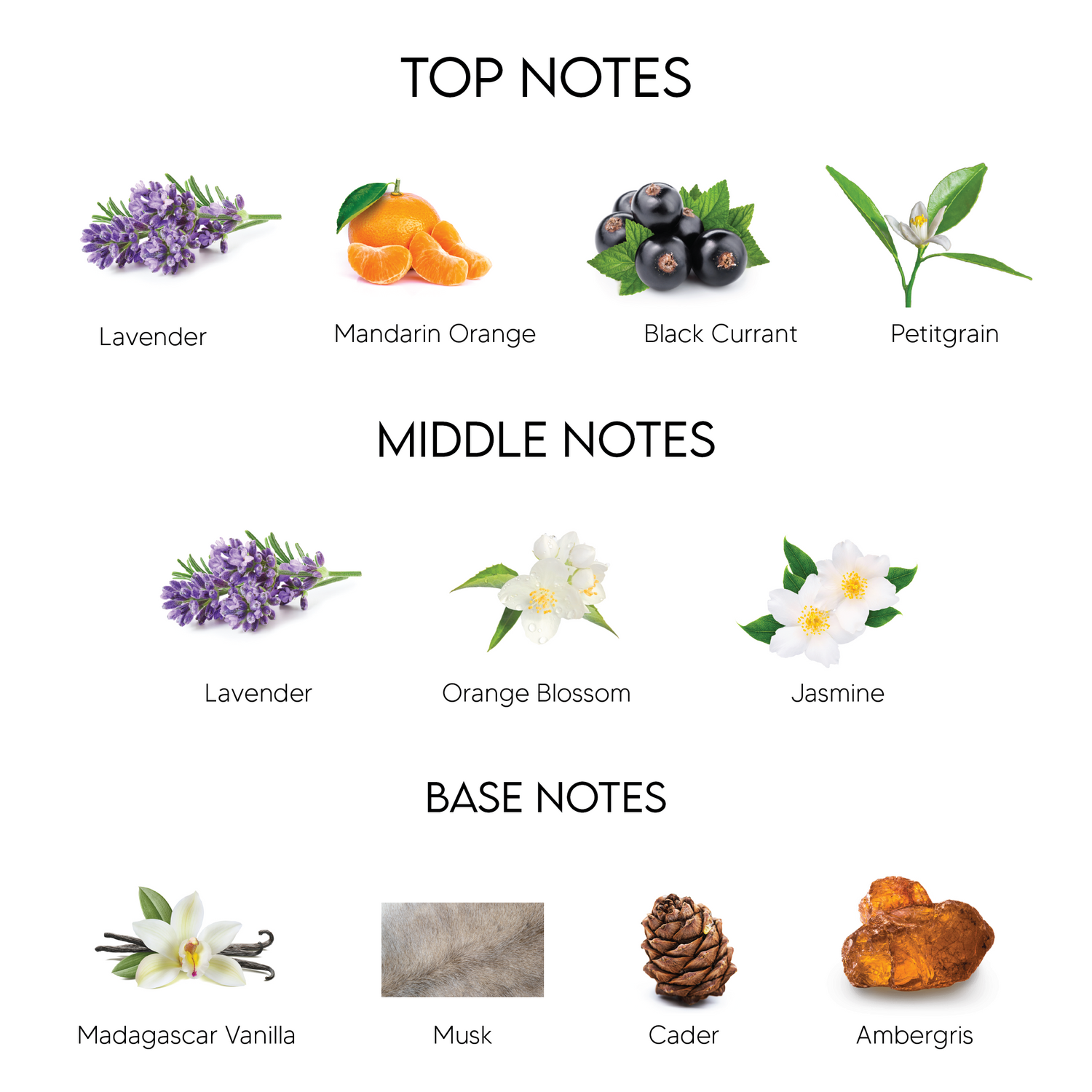 Top Notes: Mandarin, blackcurrant, petitgrain, lavender